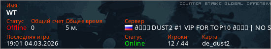 Играет на Counter Strike Global Offensive сервере. Страна: РоссияПервый раз замечен 18:50 04.03.2026