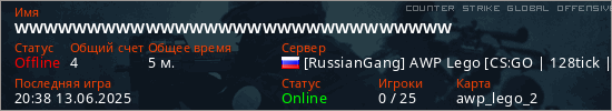 Играет на Counter Strike Global Offensive сервере. Страна: РоссияПервый раз замечен 20:03 13.06.2025