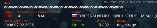 Играет на Counter Strike Global Offensive сервере. Страна: РоссияПервый раз замечен 09:50 07.02.2026