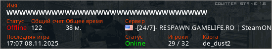 Играет на Counter Strike 1.6 сервере. Страна: СШАПервый раз замечен 17:40 06.02.2025
