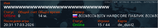 Последний раз был в сети 20:31 17.03.2026 Игрок с таким ником замечен на 8 серверах