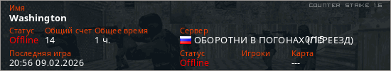 Играет на Counter Strike 1.6 сервере. Страна: РоссияПервый раз замечен 21:07 05.02.2026