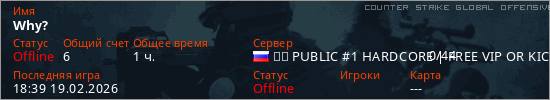 Последний раз был в сети 18:39 19.02.2026 Игрок с таким ником замечен на 41 сервере