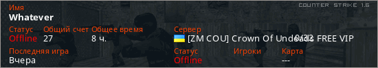 Играет на Counter Strike 1.6 сервере. Страна: УкраинаПервый раз замечен 12:12 22.10.2025