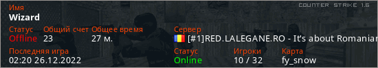 Играет на Counter Strike 1.6 сервере. Страна: РумынияПервый раз замечен 01:55 26.12.2022