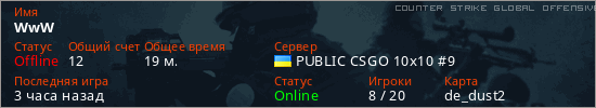 Играет на Counter Strike Global Offensive сервере. Страна: УкраинаПервый раз замечен 18:43 09.03.2026