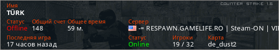 Играет на Counter Strike 1.6 сервере. Страна: СШАПервый раз замечен 18:07 28.12.2025