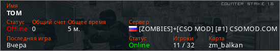 Последний раз был в сети Вчера Игрок с таким ником замечен на 33 серверах