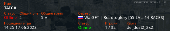 Играет на Counter Strike 1.6 сервере. Страна: РоссияПервый раз замечен 14:23 17.06.2023