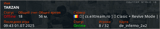 Играет на Counter Strike 1.6 сервере. Страна: РумынияПервый раз замечен 06:24 01.05.2025