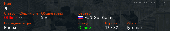 Последний раз был в сети Вчера Игрок с таким ником замечен на 31 сервере
