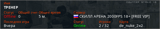 Последний раз был в сети Вчера Игрок с таким ником замечен на 15 серверах