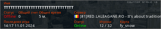 Играет на Counter Strike 1.6 сервере. Страна: РумынияПервый раз замечен 14:13 11.01.2024