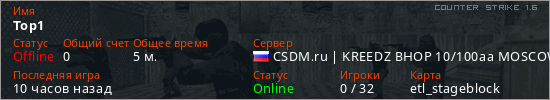 Играет на Counter Strike 1.6 сервере. Страна: РоссияПервый раз замечен 14:26 06.04.2026