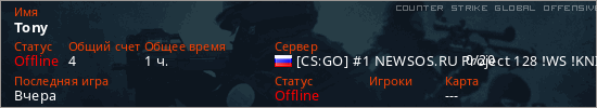 Играет на Counter Strike Global Offensive сервере. Страна: РоссияПервый раз замечен 19:35 14.03.2026