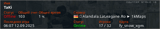 Играет на Counter Strike 1.6 сервере. Страна: ГерманияПервый раз замечен 16:59 17.07.2024