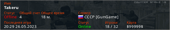 Играет на Counter Strike 1.6 сервере. Страна: РоссияПервый раз замечен 18:15 30.04.2023