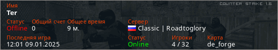 Играет на Counter Strike 1.6 сервере. Страна: РоссияПервый раз замечен 23:01 07.01.2025