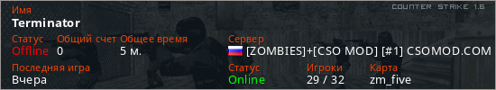 Последний раз был в сети Вчера Игрок с таким ником замечен на 39 серверах