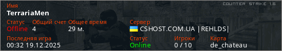Играет на Counter Strike 1.6 сервере. Страна: УкраинаПервый раз замечен 18:24 16.12.2025