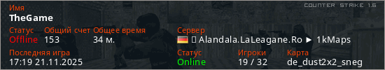 Последний раз был в сети 17:19 21.11.2025 Игрок с таким ником замечен на 8 серверах