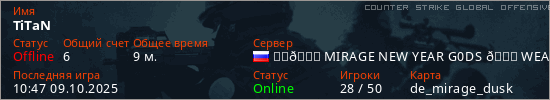 Играет на Counter Strike Global Offensive сервере. Страна: РоссияПервый раз замечен 14:03 23.04.2025