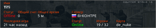 Последний раз был в сети 20 часов назад Игрок с таким ником замечен на 5 серверах