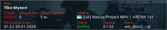 Играет на Counter Strike Global Offensive сервере. Страна: УкраинаПервый раз замечен 01:07 30.01.2026