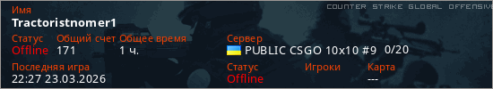 Играет на Counter Strike Global Offensive сервере. Страна: УкраинаПервый раз замечен 21:47 17.03.2026