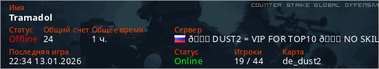 Играет на Counter Strike Global Offensive сервере. Страна: РоссияПервый раз замечен 13:33 07.12.2025
