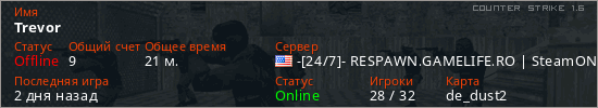 Играет на Counter Strike 1.6 сервере. Страна: СШАПервый раз замечен 23:18 12.04.2025