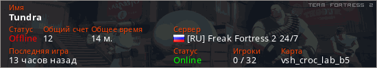 Играет на Team Fortress 2 сервере. Страна: РоссияПервый раз замечен 17:51 13.03.2026