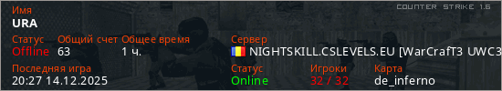 Играет на Counter Strike 1.6 сервере. Страна: РумынияПервый раз замечен 03:13 13.11.2025