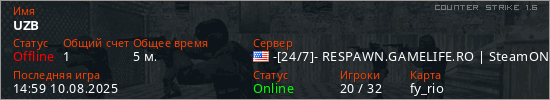 Играет на Counter Strike 1.6 сервере. Страна: СШАПервый раз замечен 14:57 10.08.2025