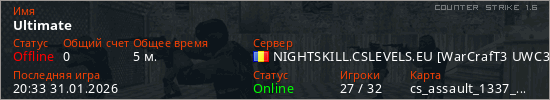 Последний раз был в сети 20:33 31.01.2026 Игрок с таким ником замечен на 12 серверах