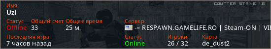 Играет на Counter Strike 1.6 сервере. Страна: СШАПервый раз замечен 04:17 30.12.2025