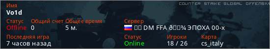 Играет на Counter Strike Global Offensive сервере. Страна: РоссияПервый раз замечен 14:01 24.02.2026