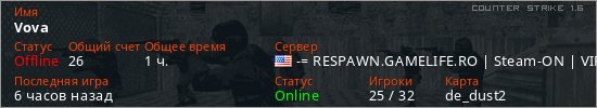 Играет на Counter Strike 1.6 сервере. Страна: СШАПервый раз замечен 19:01 10.02.2026