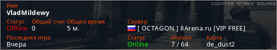 Последний раз был в сети Вчера Игрок с таким ником замечен на 2 серверах