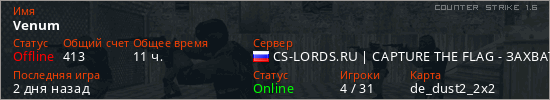 Последний раз был в сети 2 дня назад Игрок с таким ником замечен на 11 серверах
