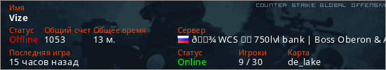 Играет на Counter Strike Global Offensive сервере. Страна: РоссияПервый раз замечен 20:50 26.03.2026