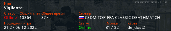 Играет на Counter Strike 1.6 сервере. Страна: РоссияПервый раз замечен 22:27 07.05.2022
