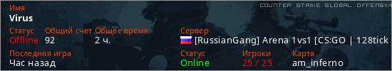 Играет на Counter Strike Global Offensive сервере. Страна: РоссияПервый раз замечен 17:09 26.12.2025