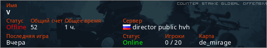 Последний раз был в сети Вчера Игрок с таким ником замечен на 52 серверах
