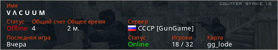 Последний раз был в сети Вчера Игрок с таким ником замечен на 30 серверах