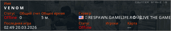 Играет на Counter Strike 1.6 сервере. Страна: СШАПервый раз замечен 02:45 20.03.2026