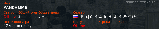 Играет на Counter Strike 1.6 сервере. Страна: РоссияПервый раз замечен 11:01 17.01.2026