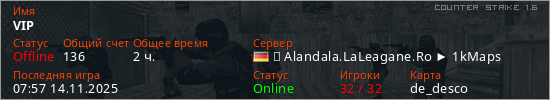 Последний раз был в сети 07:57 14.11.2025 Игрок с таким ником замечен на 45 серверах