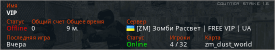 Играет на Counter Strike 1.6 сервере. Страна: УкраинаПервый раз замечен 20:49 08.04.2026