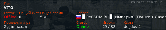 Последний раз был в сети 2 дня назад Игрок с таким ником замечен на 13 серверах